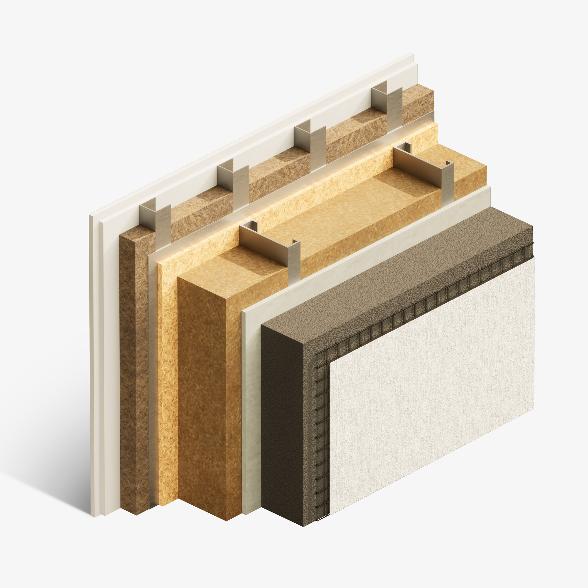 Nosilna jeklena konstrukcija v debelini 15 cm z izolacijo zagotavlja odlične izolativne vrednosti, visoko požarno zaščito in visoko zvočno izolativnost, saj se prvotno uporablja kot fasadna izolacija. Z vsemi sloji zagotovimo izolativnostni faktor, ki ustreza standardom pasivne gradnje, jeklena kostrukcija pa omogoča tudi optimalni izkoristek stene in prostora.